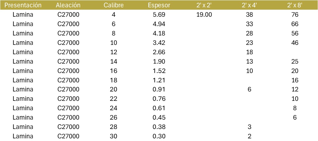 Las placas de latón se utilizan típicamente para fabricar instrumentos musicales, en las industrias de plomería y electricidad y también con fines decorativos. La lámina de latón está disponible en aleación 260 y se almacena en templados semiduros, templados blandos y láminas rolada en frío.